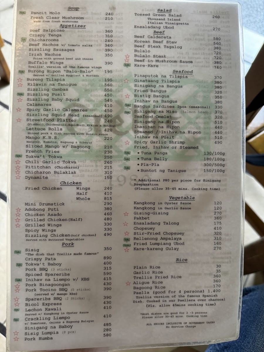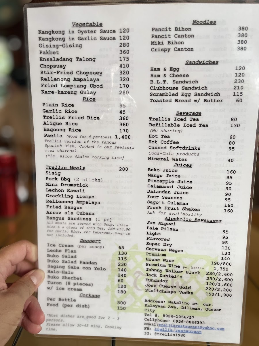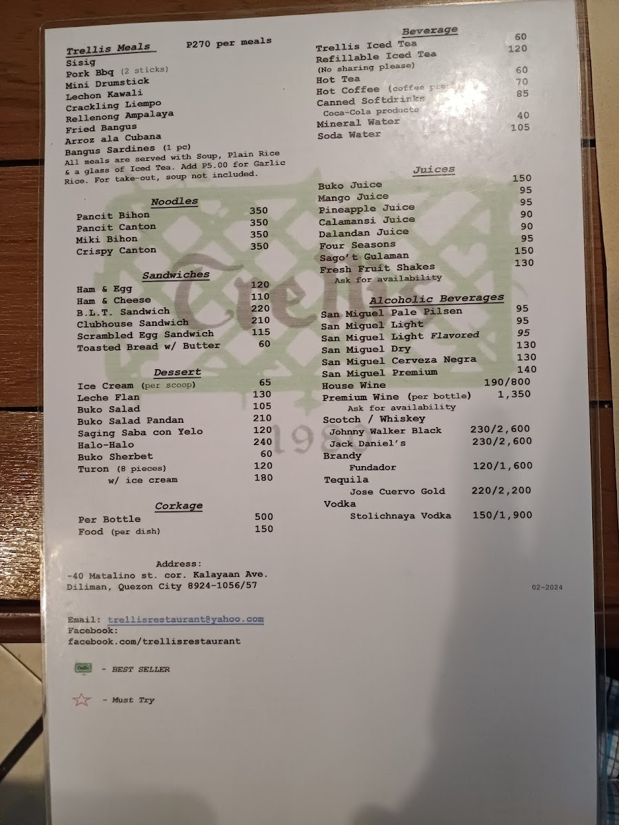 The menu at Trellis offers a straightforward selection of comforting Filipino dishes that feel both familiar and satisfying. With a focus on classic urban favorites served bar-style, it provides casual bites that pair naturally with cold beers and relaxed conversation.